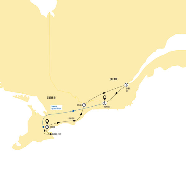 Contemporary design, UNESCO World Heritage Listed cities, romantic canals, thundering waterfalls and a city utterly obsessed with all things hockey await you on this 8 day exploration of Eastern Canada. Fall head over heels for multicultural Toronto, let the European elegance of Québec City work its charm on you, visit Canada’s dynamic and eclectic capital city of Ottawa, and indulge your cultural curiosities in Montréal.